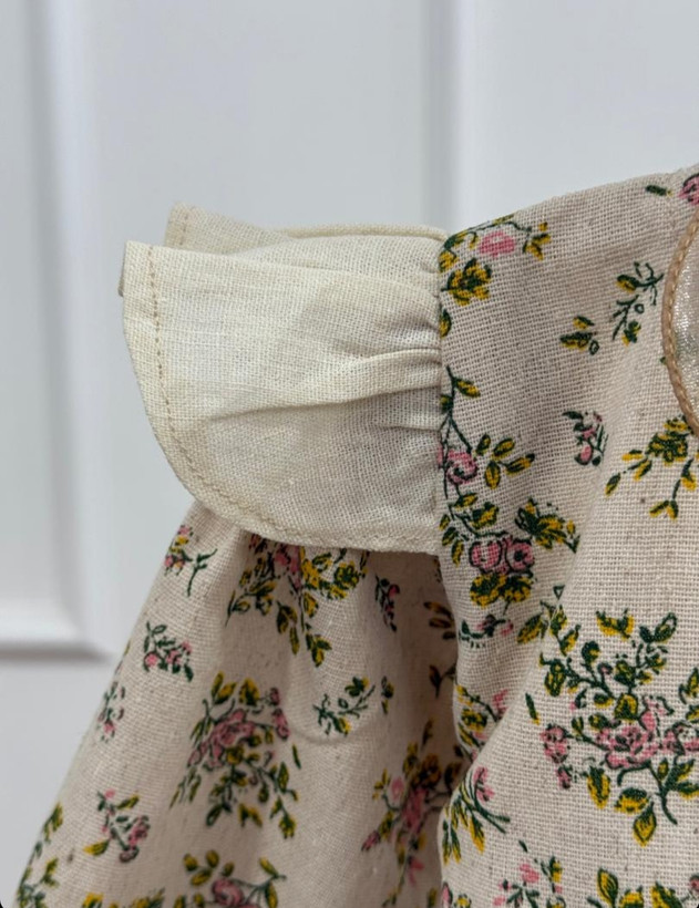 🔴پیراهن سرشانه والان دار طرح گل در چمن